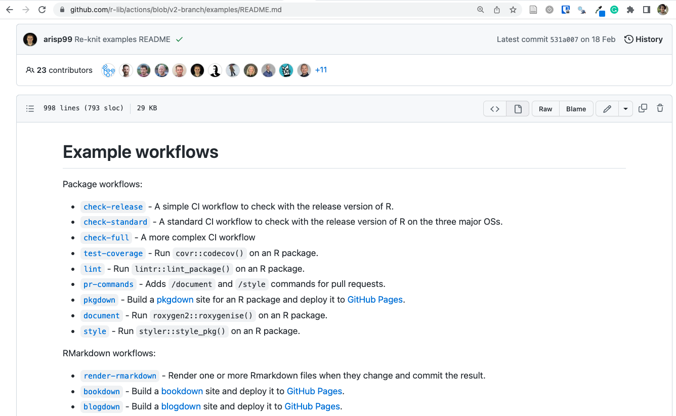 The contributors of the r-lib/actions repository:🏆 This repository was the most significant source of code and content about GitHub Actions for R to me.